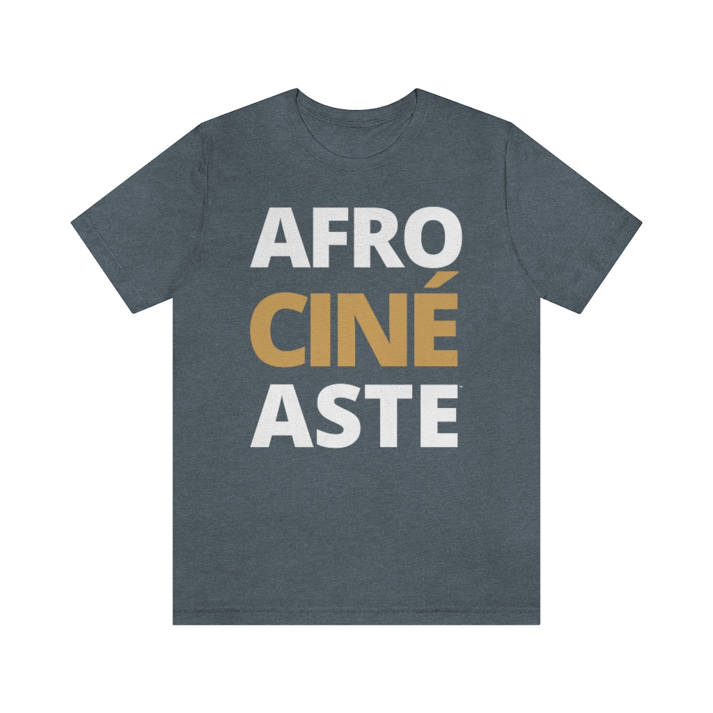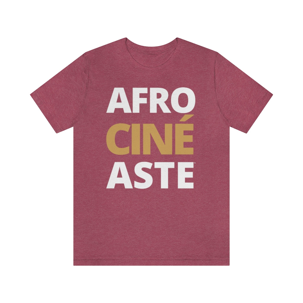 SHOW YOUR LOVE FOR AFRICAN AMERICAN AND AFRICAN DIASPORA FILMMAKING.  The definition of an AFRO CINÉASTE is a Black Filmmaker or person who is a devotee of African American and African Diaspora filmmaking.    This classic unisex jersey short sleeve tee fits like a well-loved favorite. Soft cotton and quality print make users fall in love with it over and over again. These t-shirts have-ribbed knit collars to bolster shaping. The shoulders have taping for better fit...