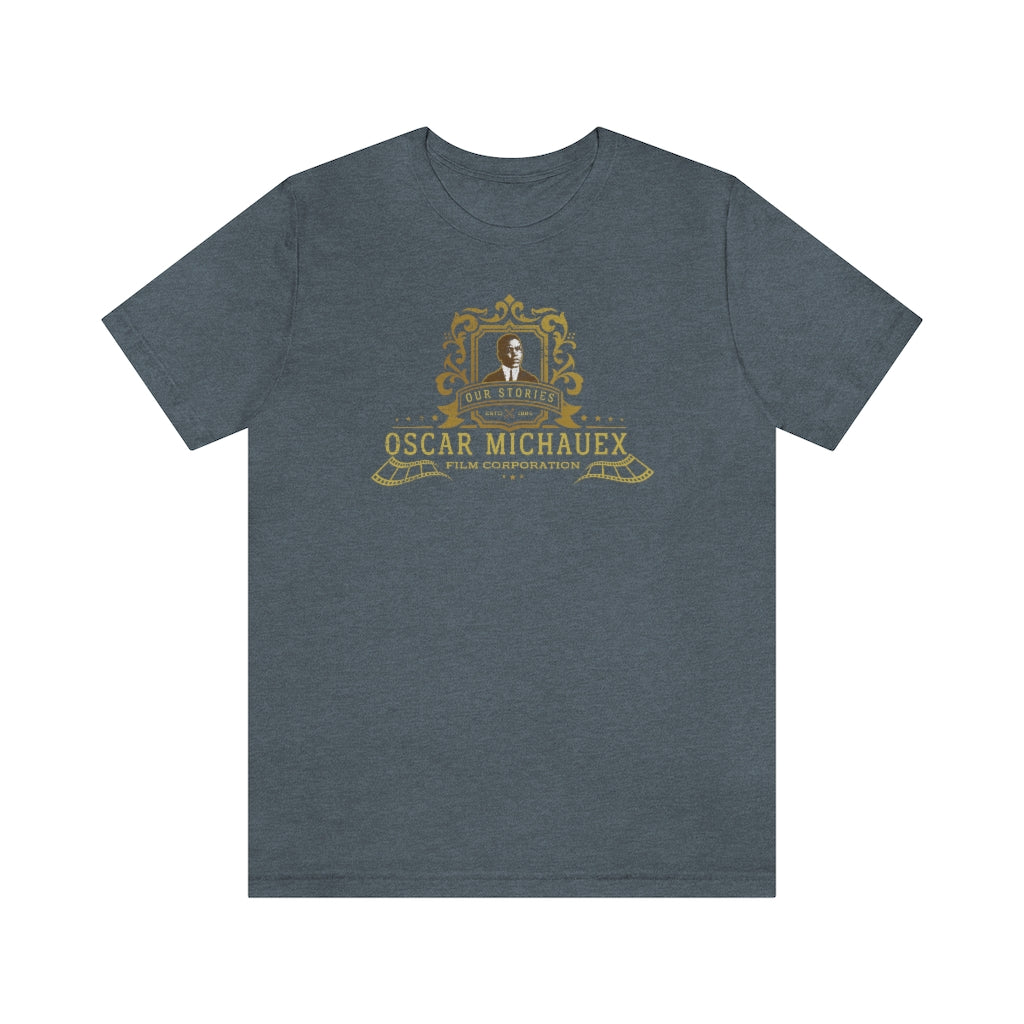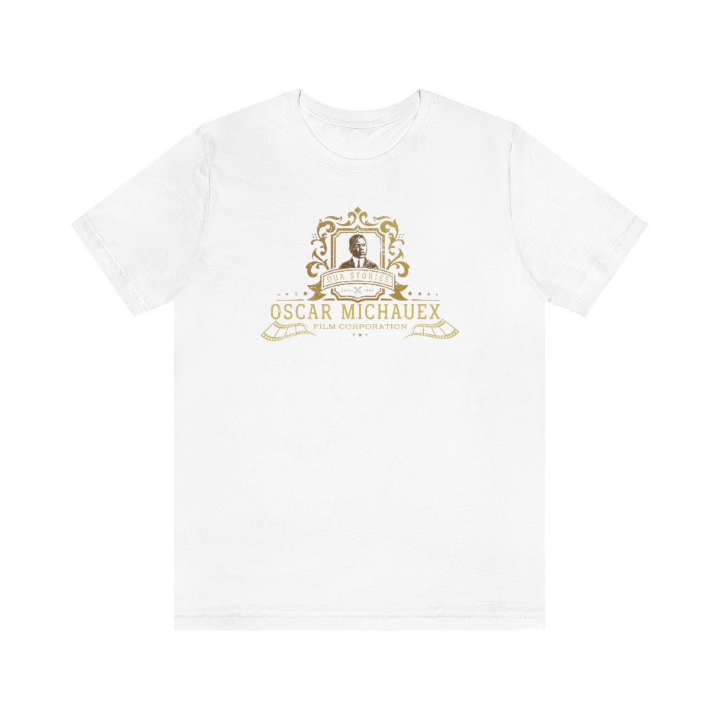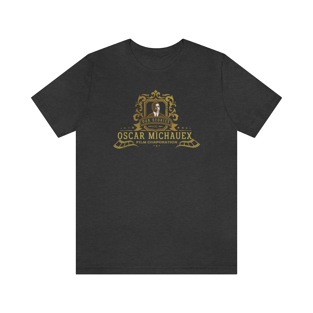 SHOW YOUR LOVE FOR AFRICAN AMERICAN AND AFRICAN DIASPORA FILMMAKING. This commorative design celebrates the legacy of Oscar Michauex, author and the first major African American feature film maker.