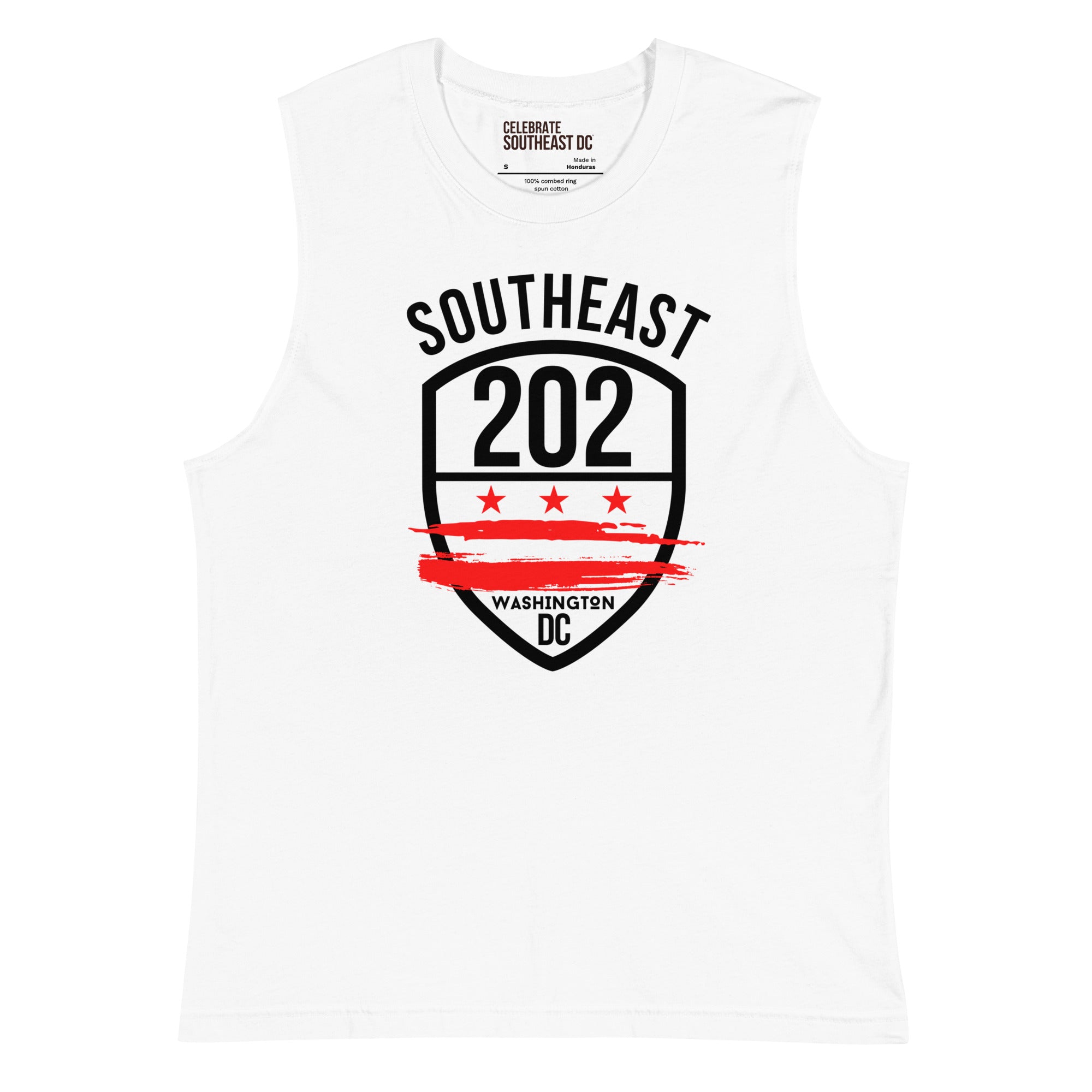 "Southeast /202" -Unisex Sleeveless T-Shirt (White)